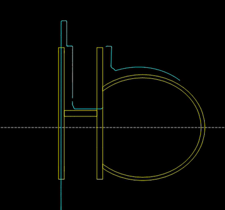 断面のCAD(黄色)と測定したデータ(青)の比較です。